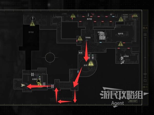 用钥匙启动旁边的起货机,到最西面的房间里拿到【腰包】【疗养院地下设施平面图】,并看到墙上的排水提示。