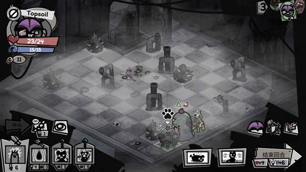 突发事件,在通过精英后我们遇到了一只流浪猫,名字叫做Topsoil,加入了我们的队伍,这对于我们而言确实是一个意料之外的事情,更何况这只猫并不携带不变之石。我们本来的思路是利用【换皮伪装】来进行全程无伤,现在突然多了一只猫,Turner的经验也会被分走,我们本来是打算在道中处理掉这只猫的,因为其被动【血肉模糊】和天赋【激增冲击】实在是没什么用处,不过快要打BOSS了,我们仍要理性思考,还是让他暂时来当一下我们的肉盾,或许在BOSS战斗中就自己死掉了呢?