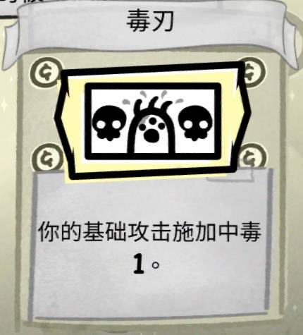在第二场战斗中获得了【毒刃】,可以施加中毒,虽然在平时这个被动输出很慢,但在单猫的情况下,中毒dot对于多动的boss而言就是恐怖的存在,我们需要为自己进行铺路。配合上多次攻击就可以叠更多的毒,但可能在道中就表现平平了。