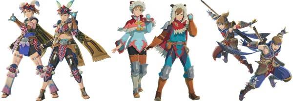 - 【怪物猎人物语2】马夏那村骑士服(下图左) 【怪物猎人物语】哈库木村骑士服装(下图中) 【怪物猎人崛起】炎火装束(下图右)