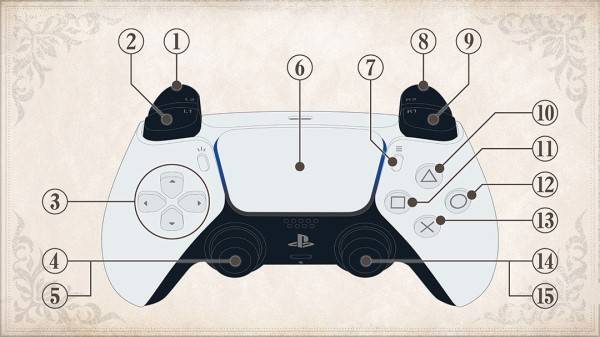 通用操作 操作说明 按键 移动 左摇杆 切换全力冲刺 按下左摇杆 视角操作 右摇杆 重置视角方向 按下右摇杆 互动 × 骑乘随行兽 □ 跳跃 △ 启动目的地引导 R1 打开菜单 ⑦菜单键 打开地图 ⑥触摸板键 小地图缩放 十字键-上 打开变更装备 十字键-下 打开快速旅行 十字键-左 打开任务 十字键-右 打开更换随行兽 长按L1 骑乘时操作 【空中】【骑乘可飞行的随行兽时】飞行 △ 近身攻击 ○ 吐息 长按R2 咆哮 L2 【飞行中】俯冲 长按L2 ※此键位为默认设置,可在游戏设置中更改