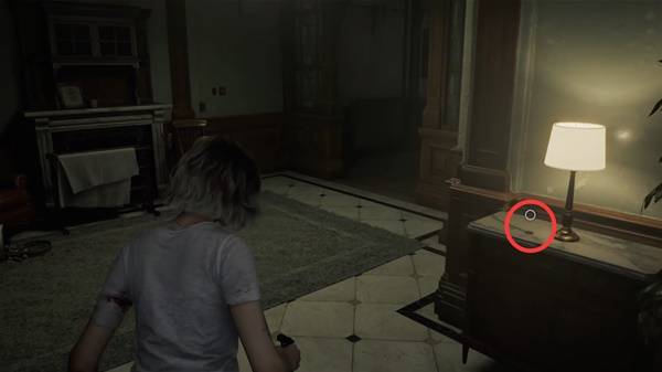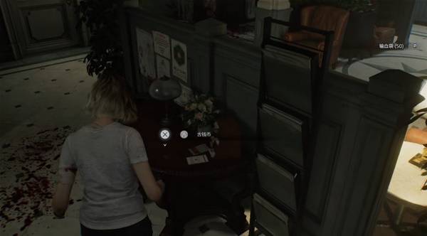 穿过餐厅,走过走廊,台灯桌上拿到【古钱币2/20】。