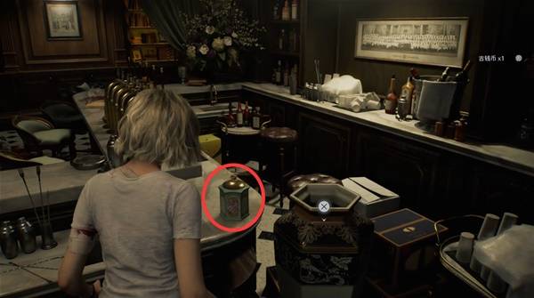 吧台旁角落的瓶子可以打碎搜刮,注意桌上这个小瓶子打碎也有个【古钱币6/20】。