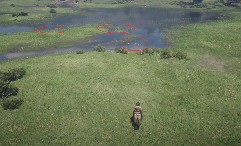 2、在白天来到此地,如下图所示的三个圈里面会刷新野鸭群。