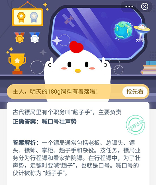 古代镖局里有个职务叫趟子手主要负责 支付宝蚂蚁庄园1月4日答案