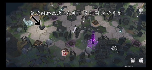9、最后我们只需要触碰4次B开关,水管如图所示,开炮即可。