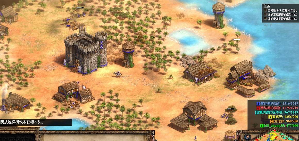 2、黑暗骚扰:黑暗时代生产民兵进行小规模的骚扰与进攻,干扰敌人的经济发展,切断对方资源从而给自己获得优势,争取到多的发展时间,需要尽早建造兵营训练民兵。