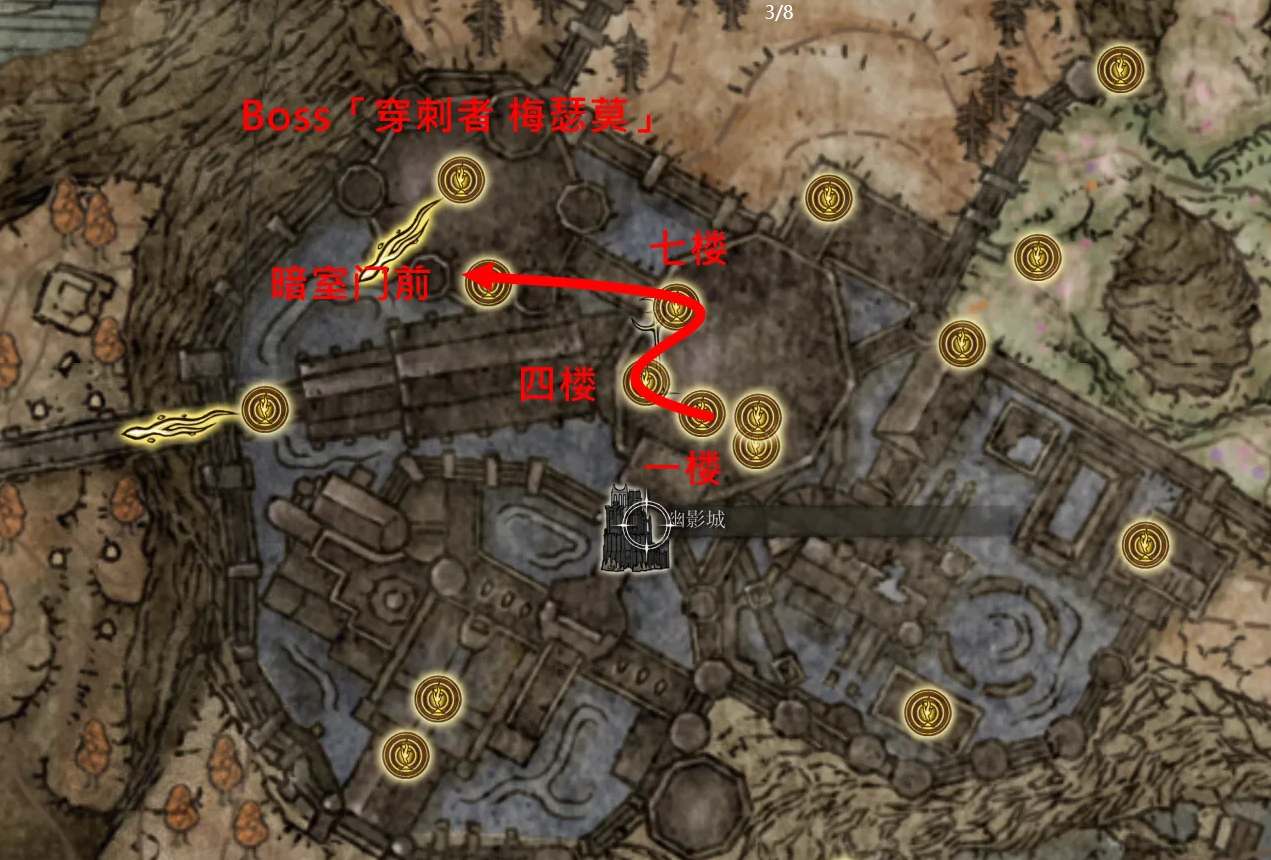 3、保藏库一楼赐福触发,途中解锁四楼和七楼的赐福,来到赐福「暗室门前」挑战Boss「梅瑟莫」可获得火种。