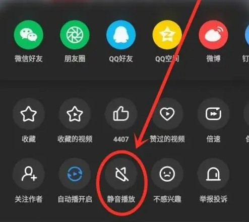 进入分享界面,点击“静音播放”图标,即可设置静音播放视频。
