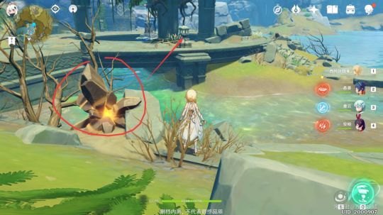 2、玩家交互后,通过收拾完-堆怪后开启它,就可以发现很多的石龛,随后玩家需要打破周围具有流光的岩石,再将附身的星星带到石龛附近,也是璃月寻宝解谜中比较常见的方式。