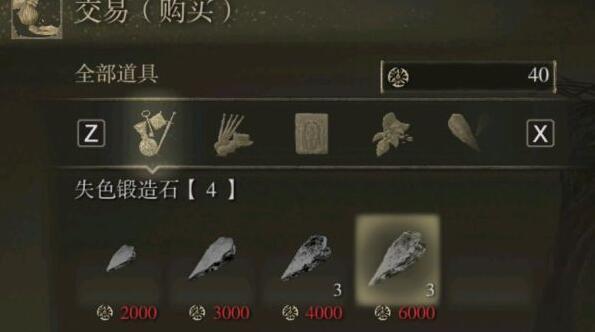1、我们花费卢恩即可在铁匠伊吉处购买到失色锻造石1。