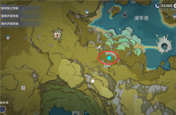几率刷新的点位看运气,在下图的标注点开宝箱,有可能刷到。