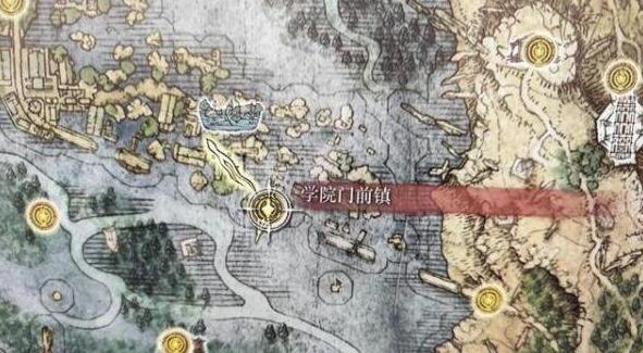 8、我们一直往前来到学院门前镇赐福点,在石碑旁边即可获得地图碎片:利耶尼亚(北),解锁地图,注意学院门前镇下的拉斯卡废墟赐福点要激活后面有用。