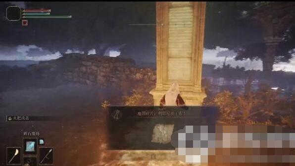 3、我们到关卡前方激活赐福即可看防火女获得马,再去废墟中,触摸营地石碑,即可获得地图碎片:宁姆格福(西),解锁地图。