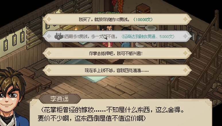 触发后续剧情选择“等花掌柜回来再说”(信用+2、心情+5、名声+10)