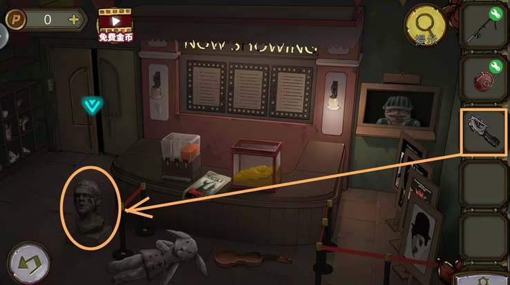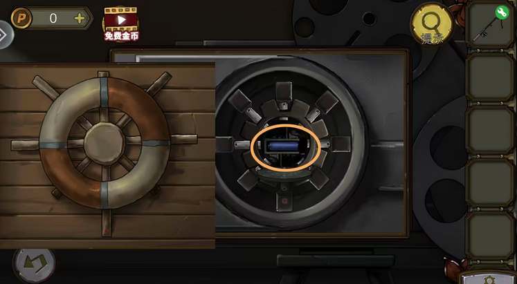 60、桌子上拿到衔尾蛇铁片,放影院的投影机上。根据泳圈后的船舵,解开机关拿到电池。