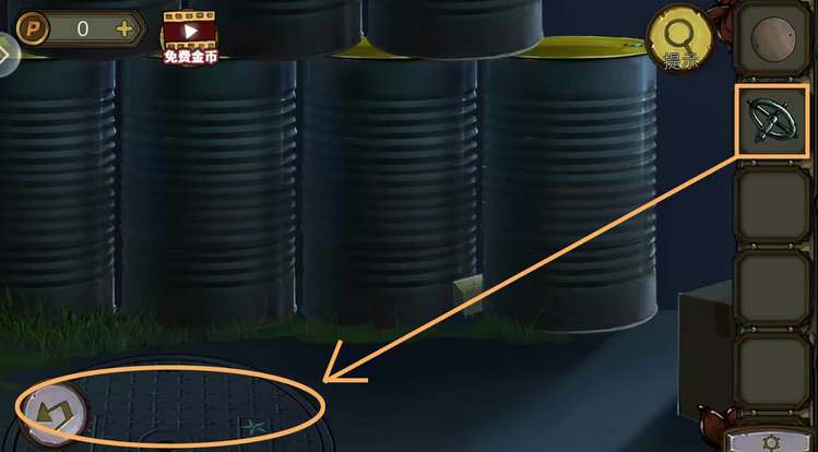 3、密码打开地上的盒子,拿到圆形弧环,圆形弧环和铁制手柄组合成拧瓶器。