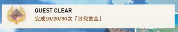 以上就是原神QUESTCLEAR成就的解锁方法,我们分别要完成10/20/30次讨伐悬赏才能解锁这个成就。