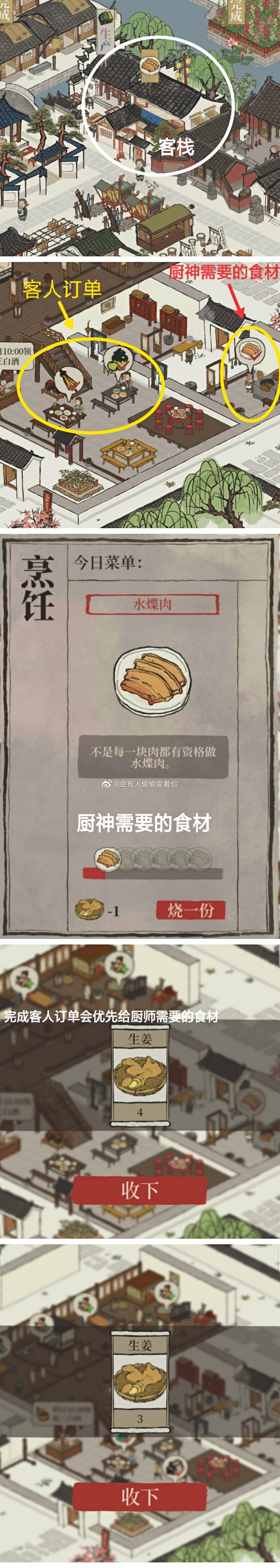 1、生姜是在应天的客栈里面,点击客人头上图标,在香料仓库兑换获取的。