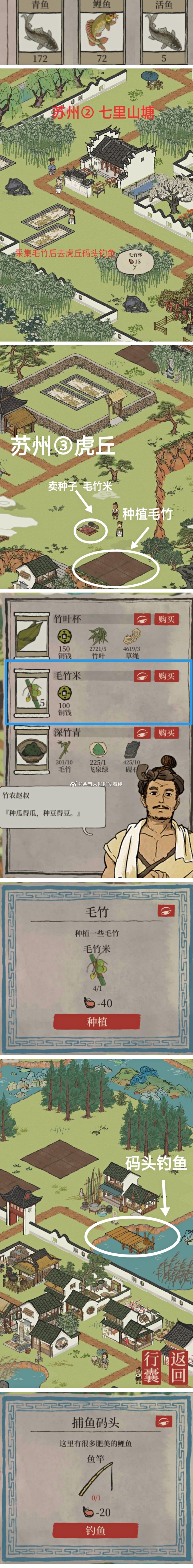 2、苏州虎丘也可以钓鱼,但是要在七狸山塘采集毛竹,或者在虎丘自己种,耗费的体力相对较多。