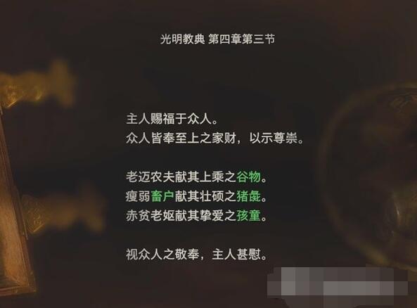 1、首选先在村长家的二楼能够找到光明教典 第四章第三节这本书。