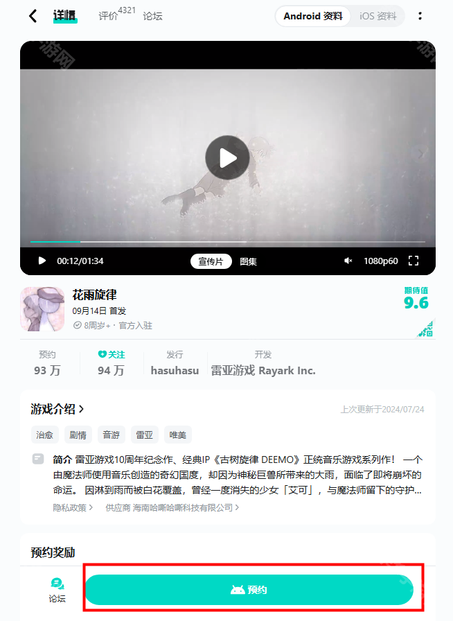 2、B站进入游戏详情页面,点击右侧的预约即可