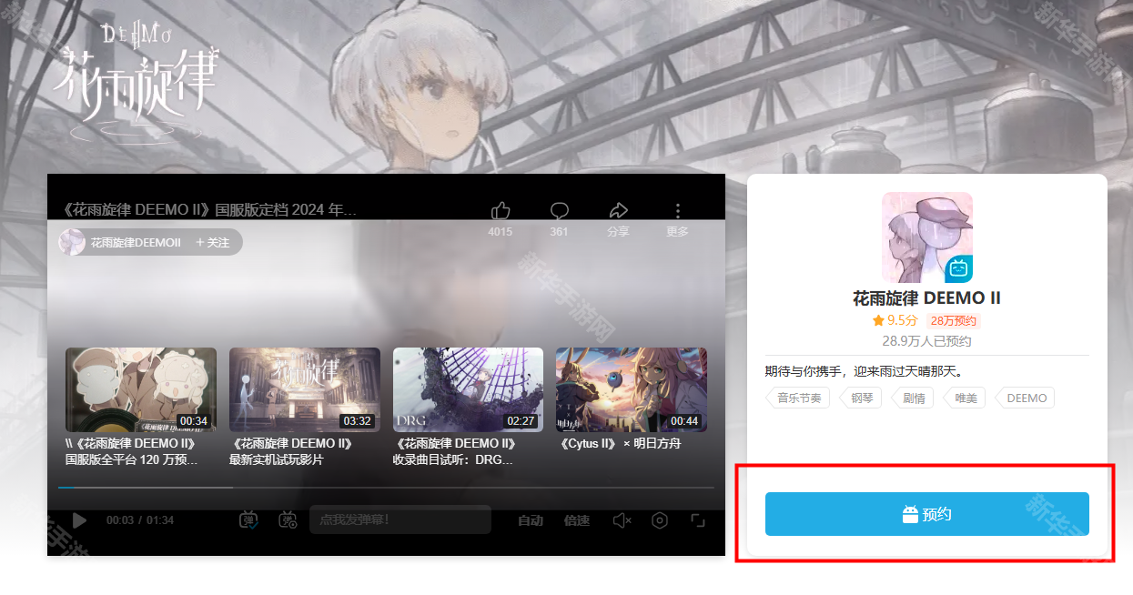 花雨旋律国服预约奖励有什么?《花雨旋律 DEEMO II》是雷亚游戏10周年纪念作、经典IP《古树旋律 DEEMO》正统音乐游戏系列作。很多小伙伴想知道游戏的预约奖励有什么,我们可以获得游戏内头像、Deemo皮肤等奖励。那么接下来就和小编一起看看吧。