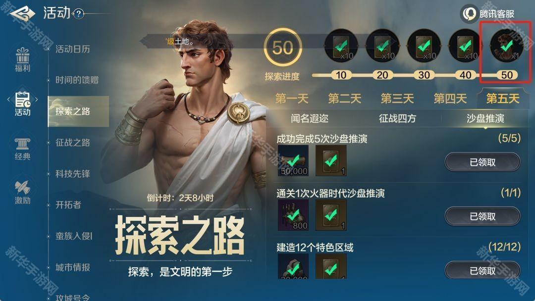 探索之路第五天,探索进度达到50时即可获得