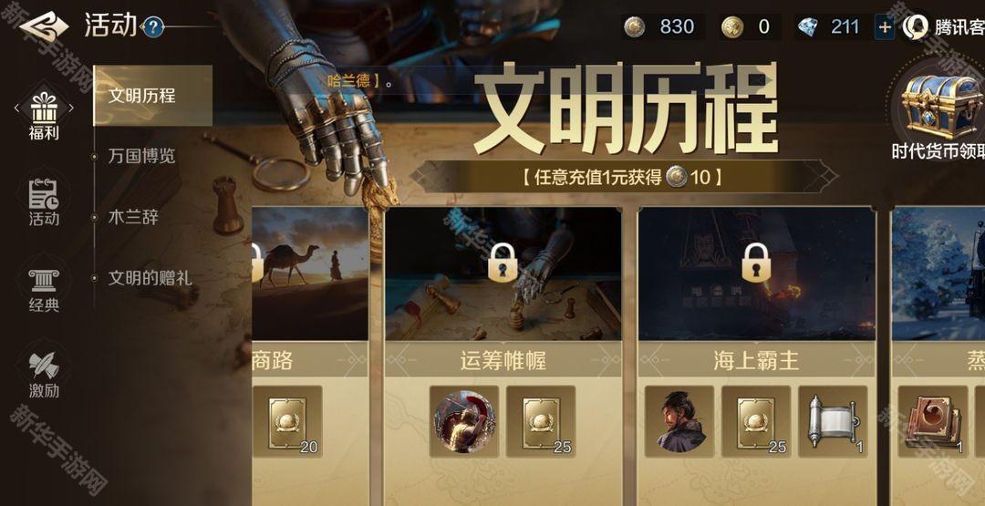 将文明历程推进到海上霸王即可获得