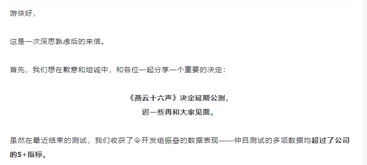 而当我们看到大家的热议——不论是希望我们延期打磨,还是期待尽快上线,字里行间都能感受到大家对燕云的关注和厚望。