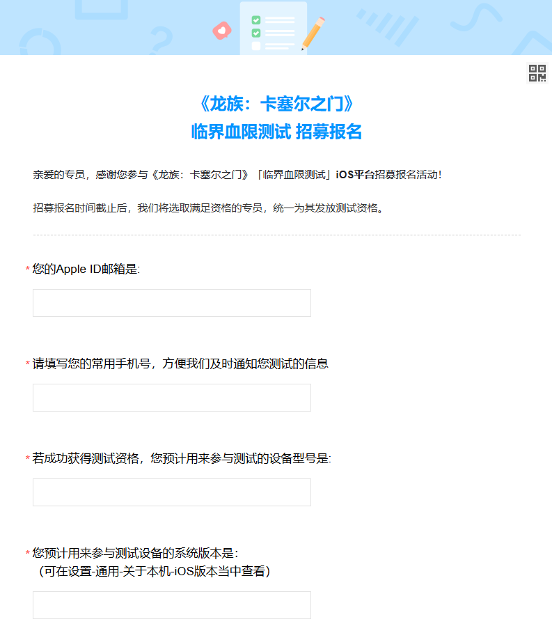 龙族卡塞尔之门临界血限测试怎么申请?龙族卡塞尔之门将开启首次测试,想要参与测试的小伙伴需要填写问卷调查,然后耐心等待回复即可。本次测试仅限IOS平台。那么接下来就和小编一起看看《龙族:卡塞尔之门》「临界血限测试」申请地址介绍吧。