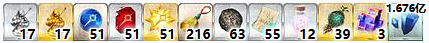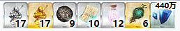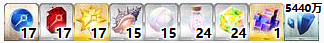 总计:术之辉石*17、术之魔石*17、术之秘石*17、追忆的贝壳*15、虹之线球*15、梦幻鳞粉*24、以太收光体*24、传承结晶*1、量子*5440万