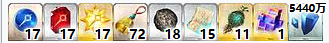 总计:术阶银棋*17、术阶金像*17、世界树之种*9、禁断书页*10、梦幻鳞粉*12、精灵根*6、量子*440万