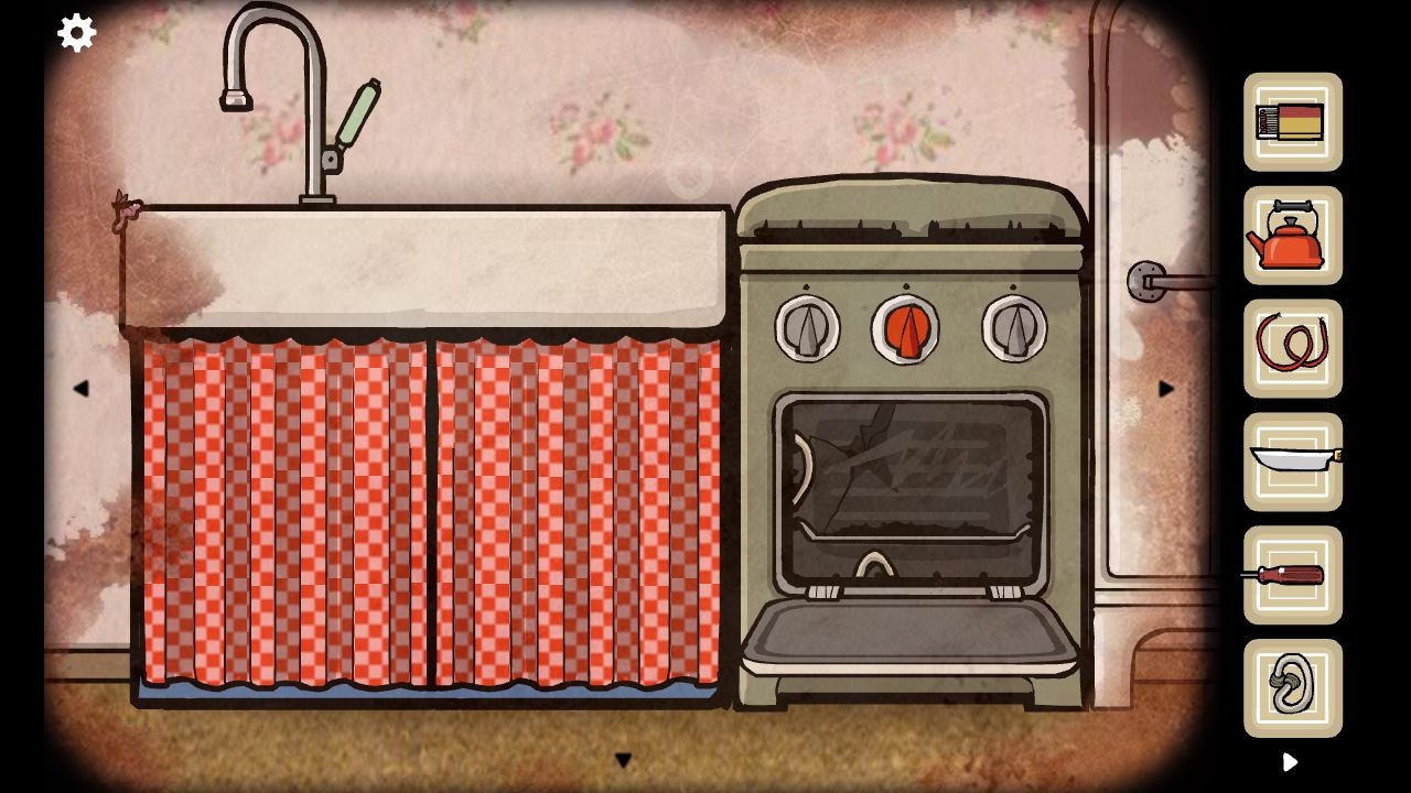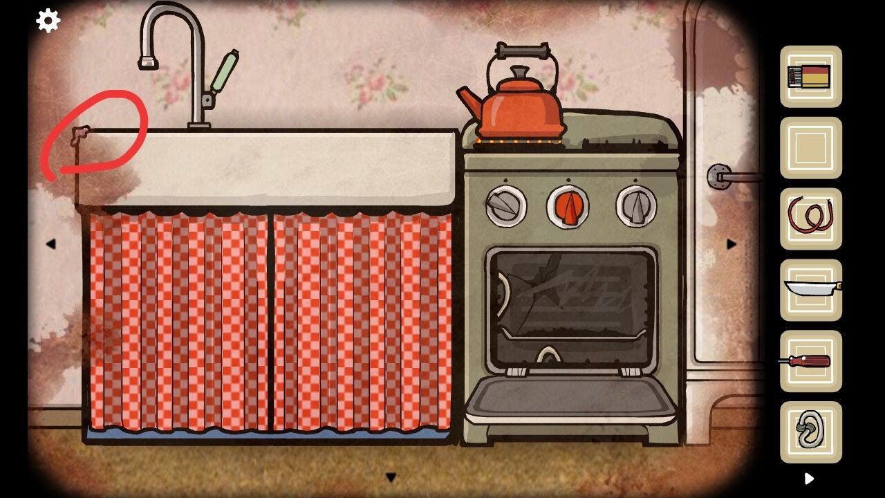 3、用钥匙打开柜子一层获得水壶,给水壶接满水,放在炉子上烧水,按下按钮后用火柴点燃煤气灶,同时把口香糖放在桌角