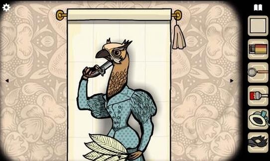 5、把野鸡小姐的房间插在保险箱的钥匙孔上,这次插在划船的图案上