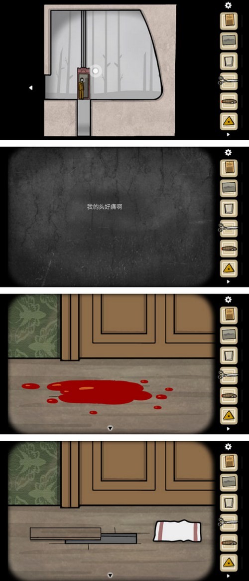 1、从鼻孔逃脱后回到房间,发现门前有一滩血,用手帕擦干后(必须完全擦干净)发现一个暗格,打开后发现传单