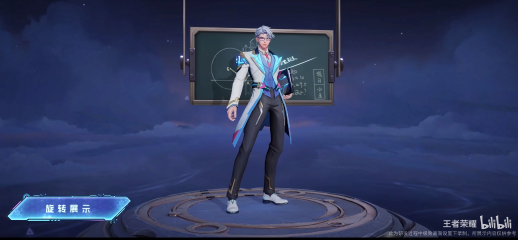 本次星元的设计灵感来自赛场教练,电竞舞台上发光发热的不止有选手,还有专业执教“筹策”赛场风云的教练员。星元的整体配色选用了自信优雅又智慧干练的白蓝,搭配粉、金装饰点缀其间,严肃之中充满了电子竞技的活力。诸葛亮的外装肩饰、腰带背后和武器上都设计了KPL字样的元素,赛事细节拉满。