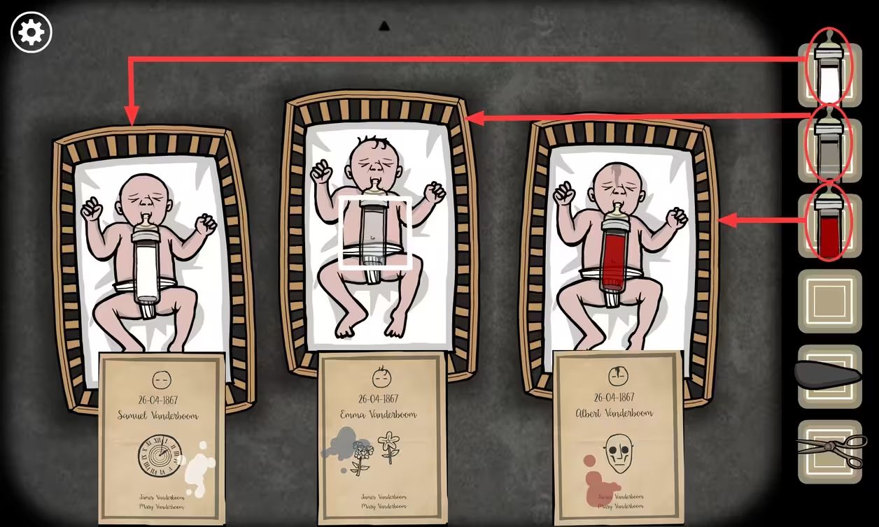 锈湖根源第六关怎么过?玛丽已经怀上詹姆斯的孩子,并准备分娩了。我们需要帮助玛丽生孩子并喂奶。不过奶瓶需要我们混入一些东西喂给对应的小孩。那么这一关怎么解密呢?一起来和小编看看《锈湖:根源》第六关图文攻略吧。