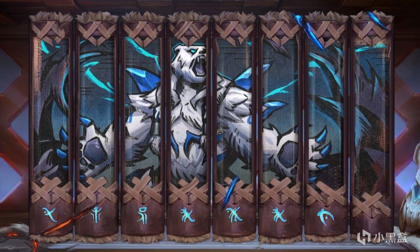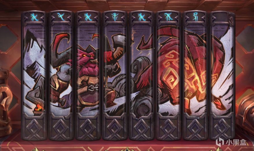 摆书需要把书籍放置成如图所示,每个书柜对应一个英雄,从左至右分别为奥恩、狗熊和冰女。