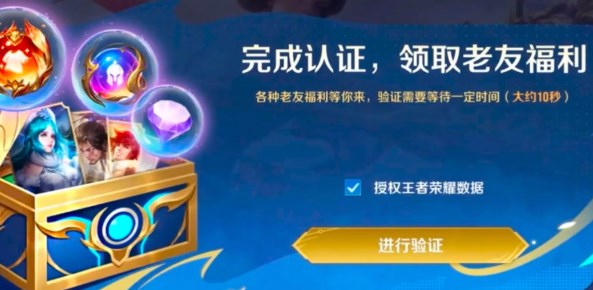 3、接着进入游戏,可以选择老友认证,我们选择“授权王者荣耀数据”即可。